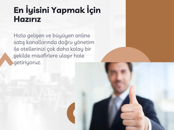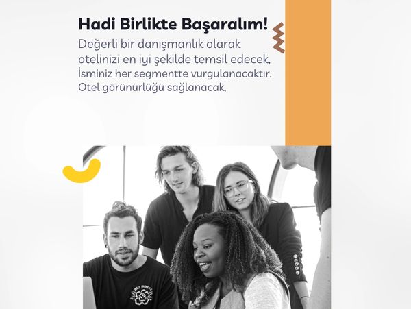 Değerli bir danışmanlık olarak, otelinizi en iyi şekilde temsil edecek, İsminiz her segmentte vurgulanacaktır. Otel görünürlüğü sağlanacak.